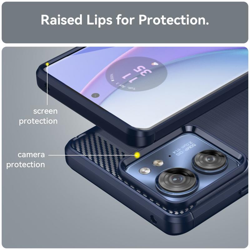 Motorola Edge 40 Børstet TPU Cover - Karbonfiber - Blå