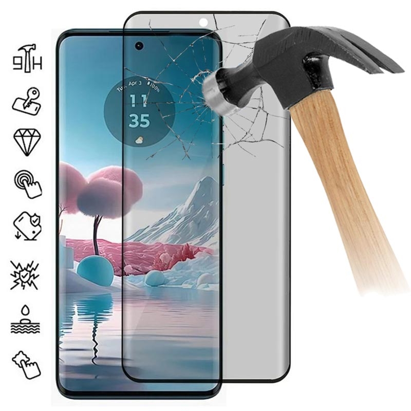 Motorola Edge 40 Neo Privacy Full Cover Skærmbeskyttelse Hærdet Glas - Sort Kant