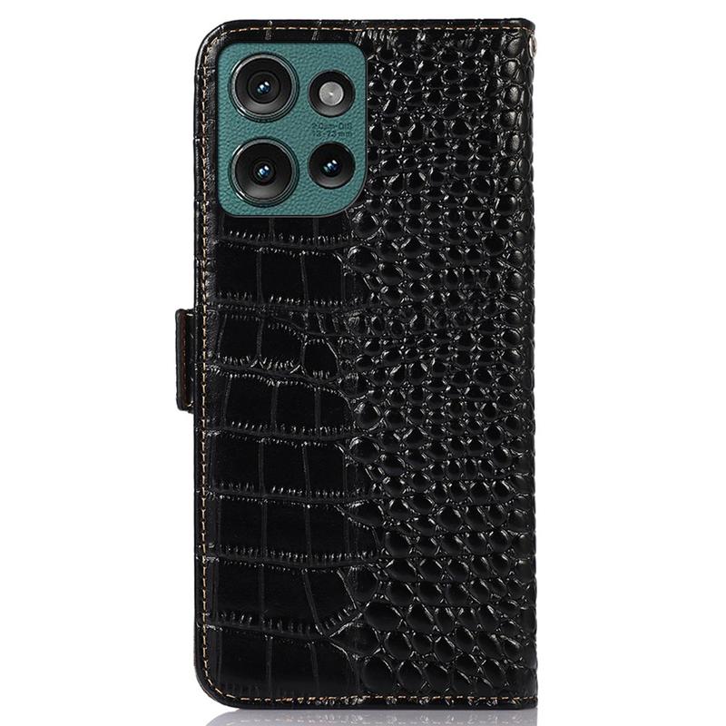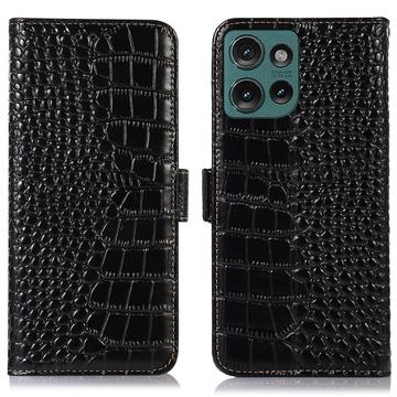 Motorola Edge 50 Neo Crocodile Series Læderpung med RFID - Sort