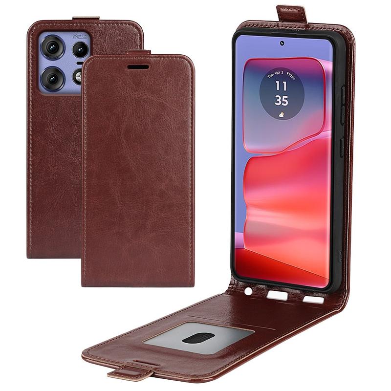 Motorola Edge 50 Pro Vertikal Flip Taske med Kortholder - Brun