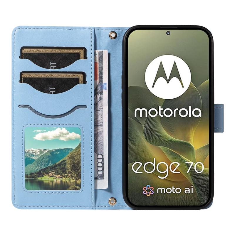 Luksus quiltet pungetui med skulder- og håndledsrem til Motorola Edge 70 - beskyttende cover med rombe-mønster
