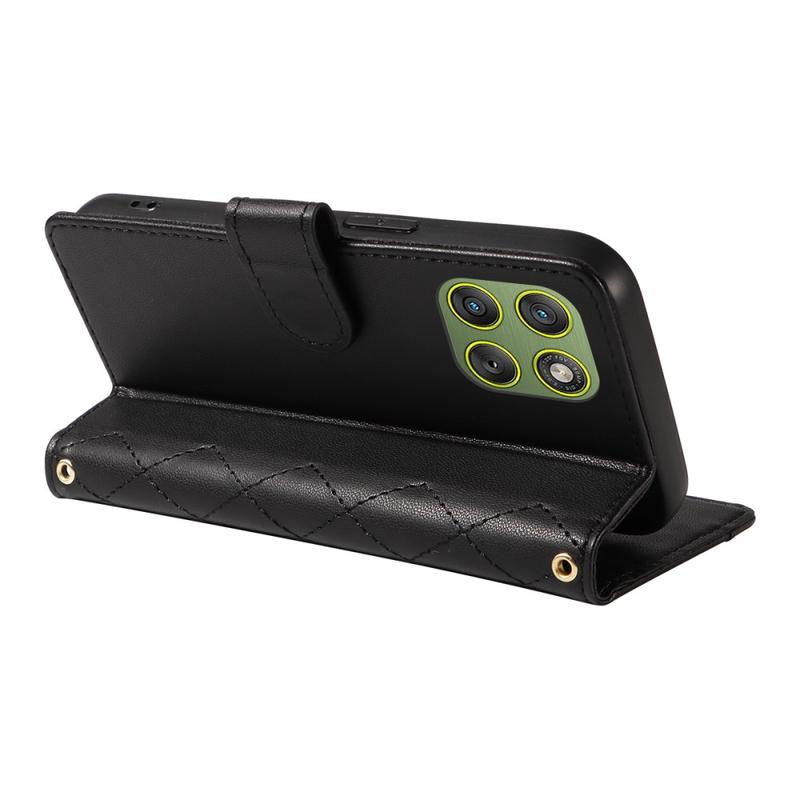 Luksus quiltet pungetui med skulder- og håndledsrem til Motorola Edge 70 - beskyttende cover med rombe-mønster
