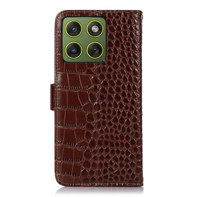Motorola Edge 70 Crocodile Series Læderpung med RFID - Brun