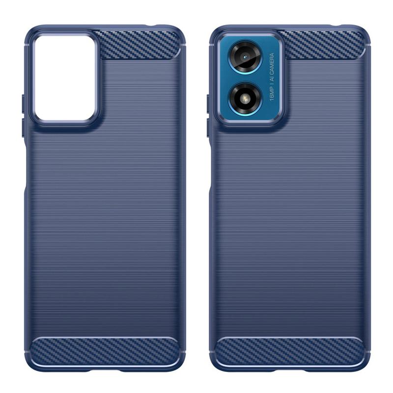 Motorola Moto G04/G24 Børstet TPU Cover - Karbonfiber - Blå