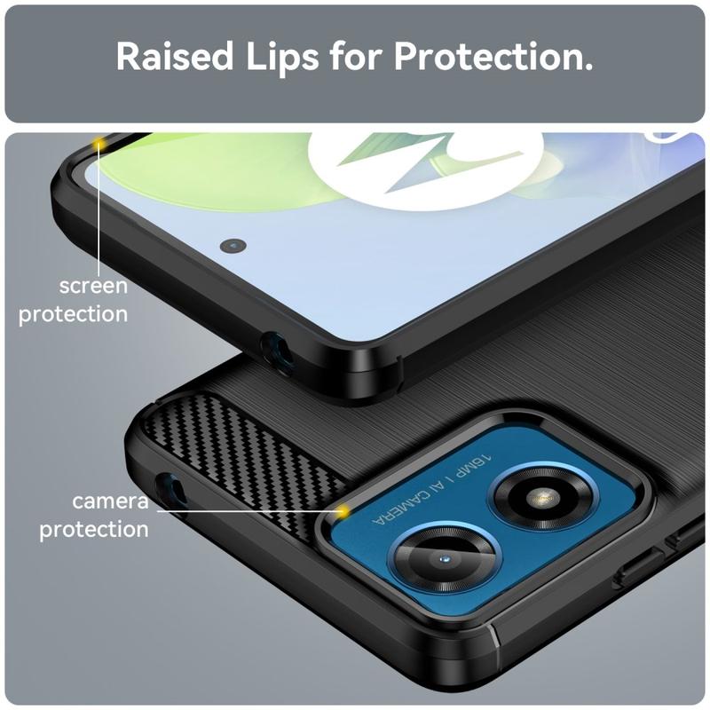 Det børstede TPU-cover beskytter din Motorola Moto G04, Moto G24 tilstrækkeligt, mens det giver den en fantastisk stil, takket være dets kulfibermønster på bagsiden. Coveret sikrer også mod overophedning, når du bruger din Motorola Moto G04, Moto G24, med dets varmeafledningsdesign.