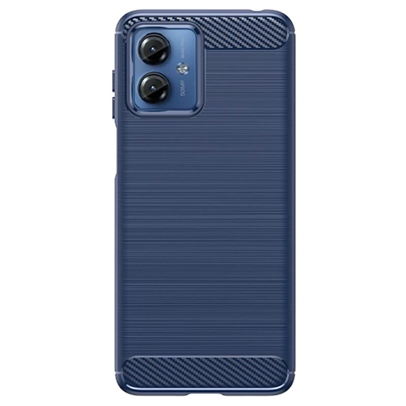Motorola Moto G14 Børstet TPU Cover - Karbonfiber - Blå