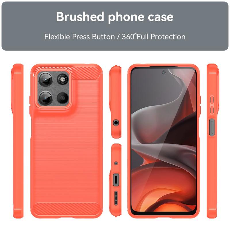Motorola Moto G15 Børstet TPU Cover - Karbonfiber - Rød