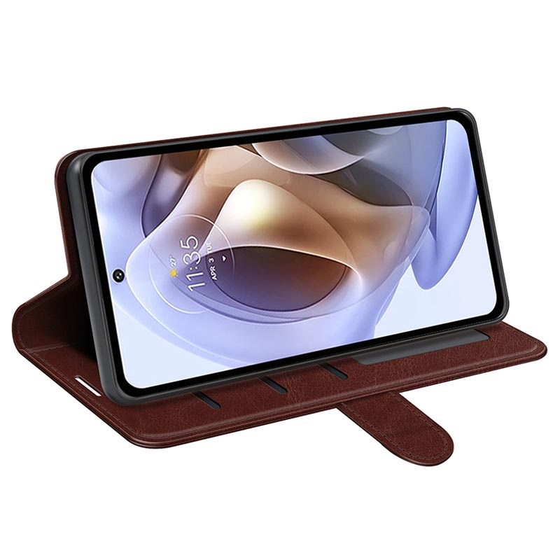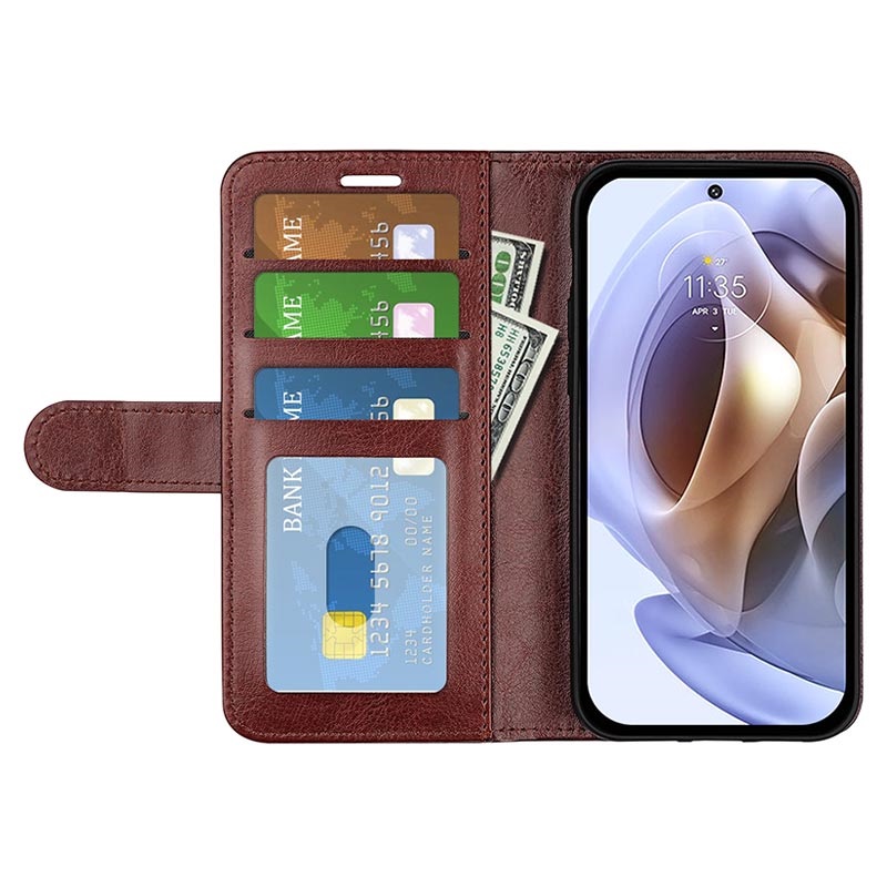 Udstyret med plads nok til et par kort og kontanter, vil det reducere mængden betydeligt, fordi du ikke behøver at have en standard pung med dig. Magnetisk lås sikrer, at pungen ikke åbner ved et uheld, og mikrofonudskæringer gør det muligt at foretage opkald selv med coveret lukket. Brug dette cover som et stativ, og nyd at se medier på din Motorola Moto G31, Moto G41.