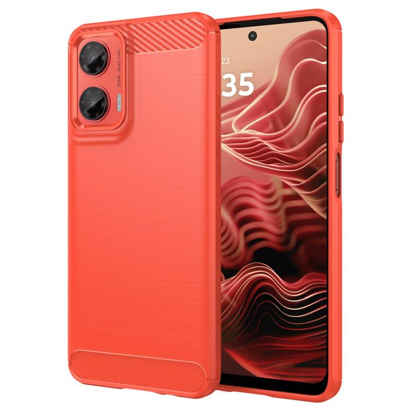 Motorola Moto G35 Børstet TPU Cover - Karbonfiber - Rød