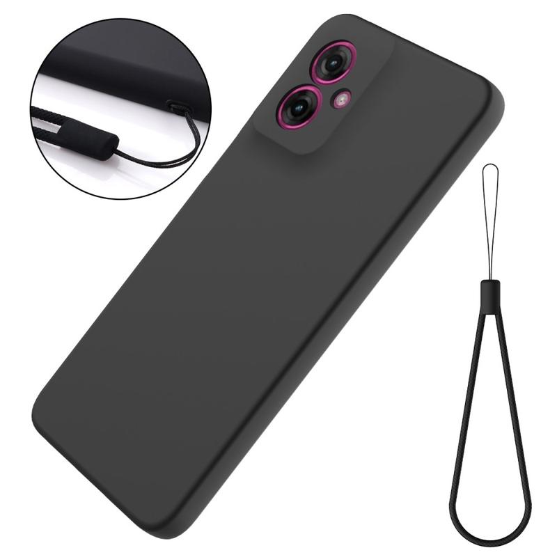 Motorola Moto G55 Liquid Silikone Cover med Strop - Sort