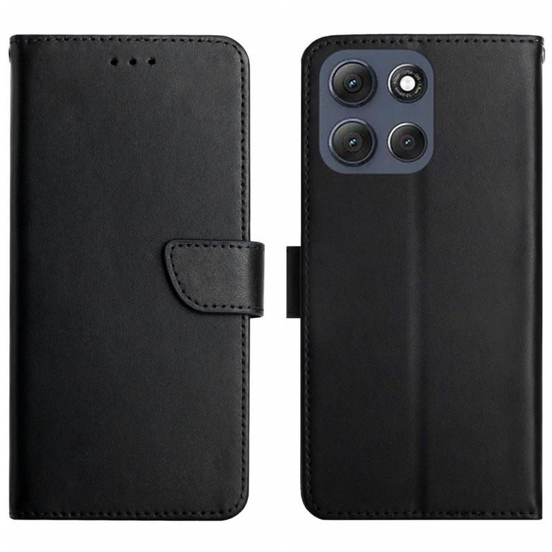 Et sofistikeret lædercover af høj kvalitet til din Motorola Moto G56. Giv din telefon et førsteklasses look, mens du holder den sikker mod ridser og almindelige skader. Denne multifunktionelle lomme i blødt læder har indvendige lommer til kort og en større lomme til kontanter. Oven i det har Motorola Moto G56 ægte læderetui håndfrit stativ og frontudskæring til at tale med etuiet lukket.
