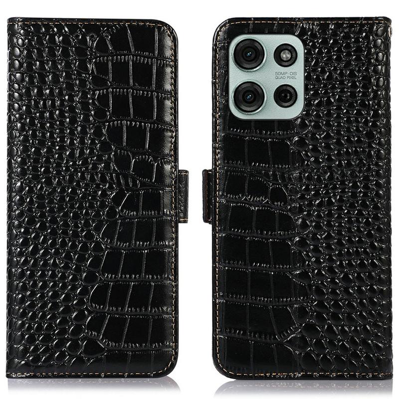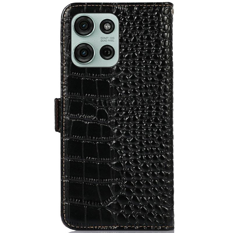 Motorola Moto G75 Crocodile Series Læderpung med RFID - Sort