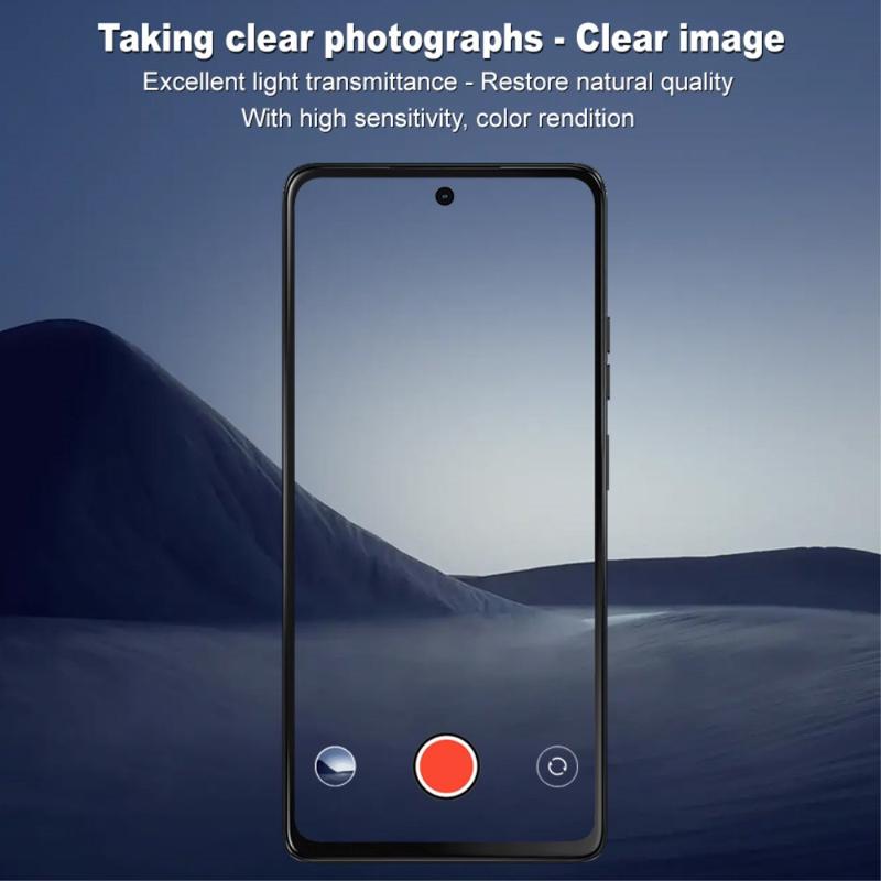 Med sine mange forstærkninger vil dette Imak HD kameralinse hærdede glas holde kameraet på din Motorola Moto G75 helt sikkert mod ridser og dagligdagsskader. Den hydrofobe og oleofobiske overflade reducerer også fingeraftryk, mens du bruger din Motorola Moto G75.