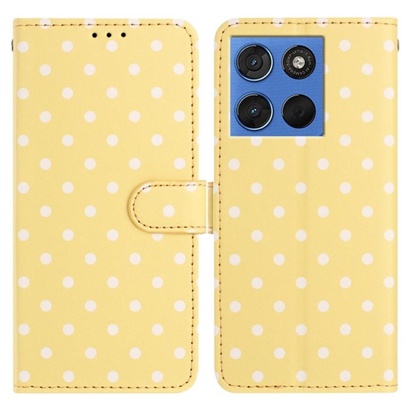 Tilføj et strejf af charme og funktionalitet til din Motorola Moto G77, Moto G67 med det polkaprikkede tegnebogsetui. Det kombinerer legende elegance med fuld beskyttelse og hverdagsvenlighed og er det perfekte tilbehør til dem, der sætter pris på både stil og funktionalitet.
