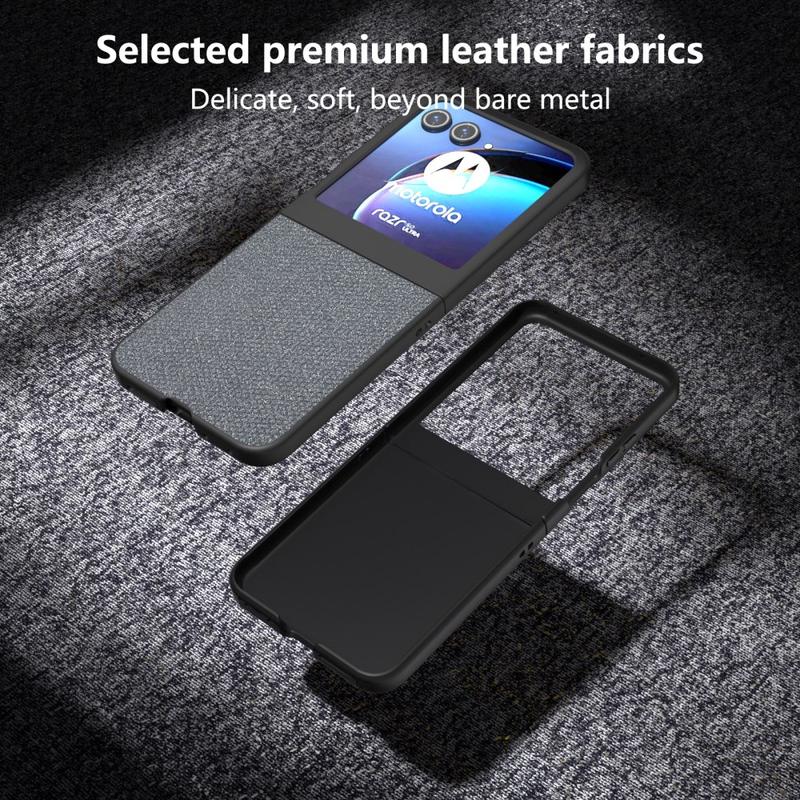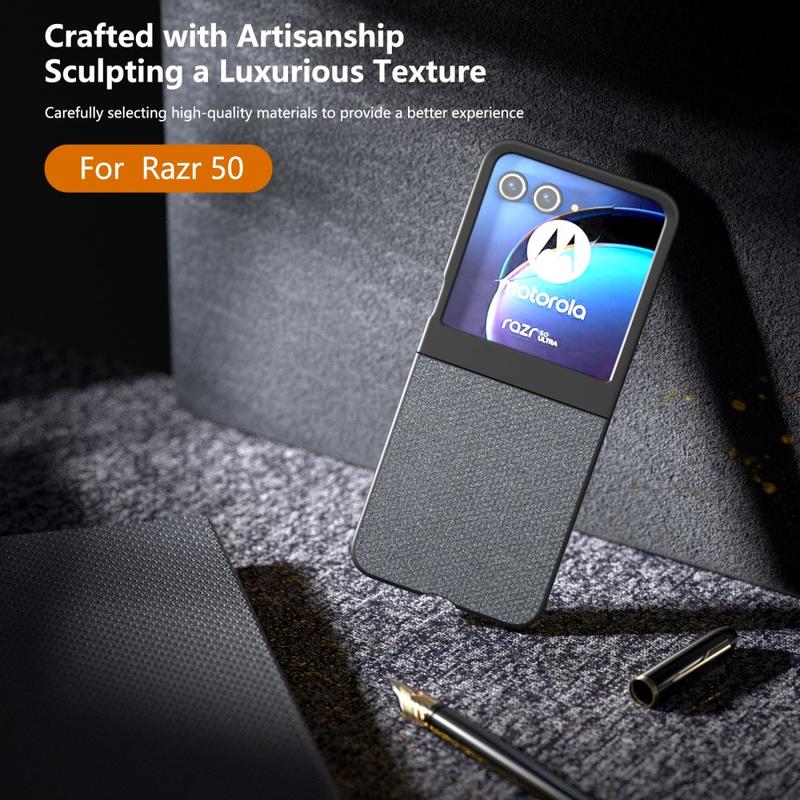 Beskyt din Motorola Razr 50 med dette førsteklasses cover. Dette cover kombinerer luksuriøst polyuretan med robust pc-materiale og er designet til at give førsteklasses beskyttelse og et sofistikeret udseende. Det skridsikre greb sikrer, at din telefon forbliver sikkert i hånden, hvilket reducerer risikoen for utilsigtede fald, samtidig med at den bevarer et slankt, professionelt udseende.