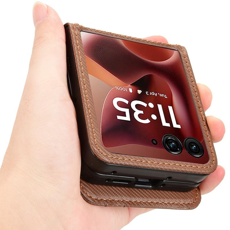 Motorola Razr 60 Ultra FlexCard kulfiberetui med kortholdere - brun