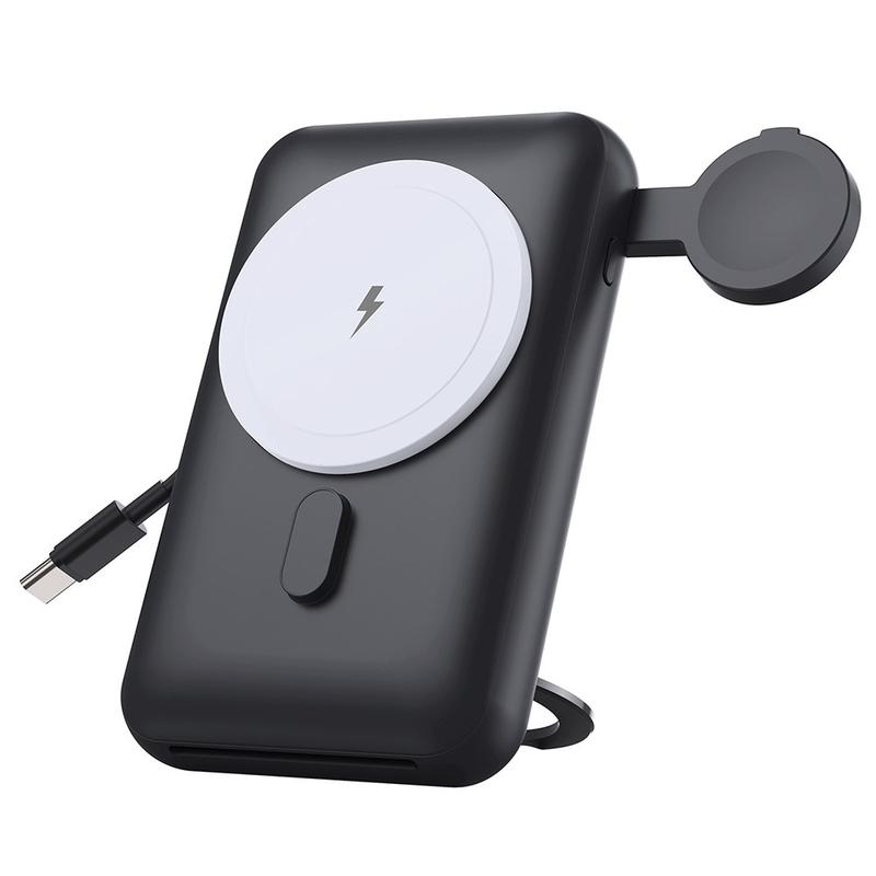 MP07 10000mAh 3-i-1 magnetisk powerbank - MagSafe-kompatibel, trådløs oplader med indbygget kabel og drejeligt stativ til iPhone, AirPods og Apple Watch