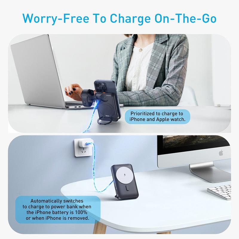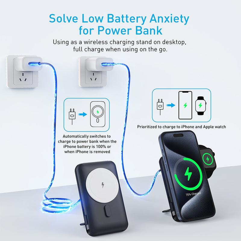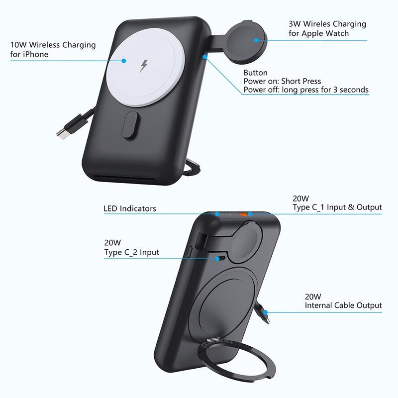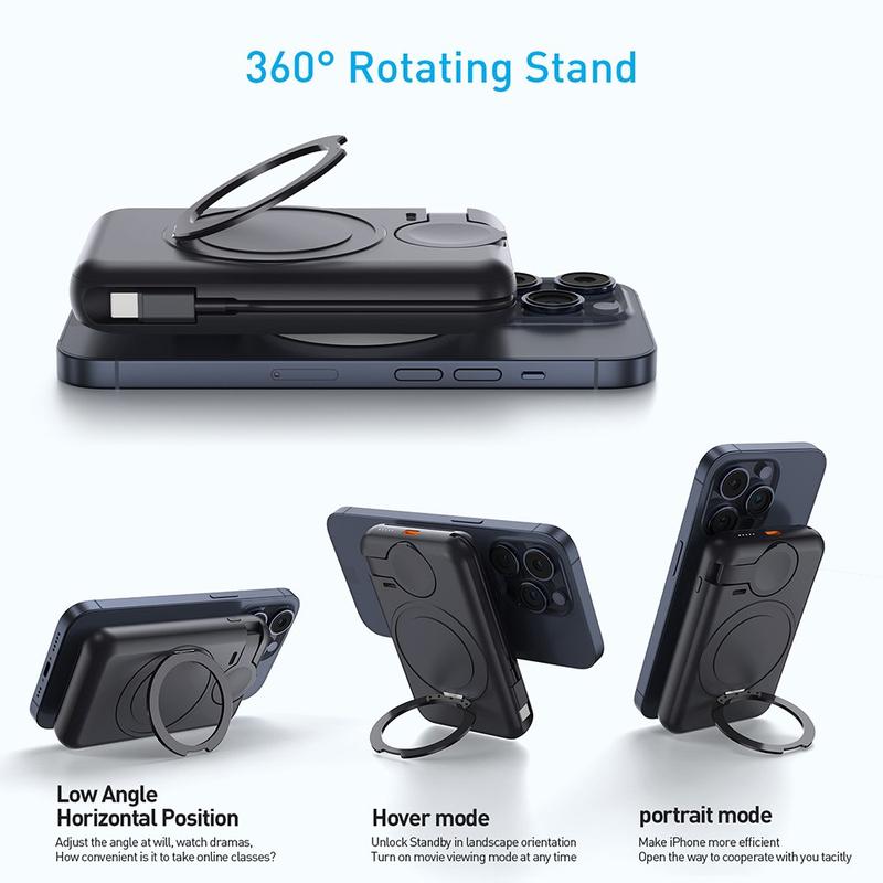 Den skiller sig også ud, fordi den kombinerer bærbarhed med førsteklasses praktisk anvendelighed. Den magnetiske opladningsfunktion gør det nemmere at placere telefonen, det indbyggede kabel reducerer rod, og det drejelige stativ tilføjer en brugervenlighed, som mange almindelige powerbanks ikke tilbyder. For brugere, der ønsker en mere alsidig og gennemført bærbar opladningsløsning, er dette et meget stærkt valg.