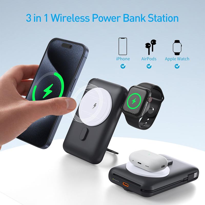 Dens 3-i-1-design gør den særligt nyttig for Apple-brugere, da du kan oplade din iPhone, AirPods og Apple Watch fra én enhed. Den indbyggede holder tilføjer endnu mere værdi i hverdagen, da den gør det nemmere at se videoer, tjekke notifikationer eller deltage i videosamtaler, mens du oplader. Med 20 W kablet hurtigopladning, understøttelse af magnetisk trådløs opladning og et gennemtænkt design til varmeafledning er MP07 skabt til at kombinere kraft, bærbarhed og daglig bekvemmelighed i én elegant, bærbar oplader.