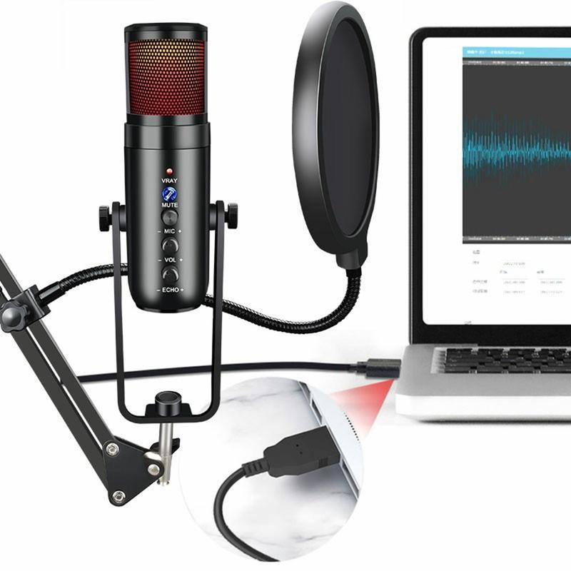 MU900MAX RGB Light Karaoke-mikrofon - E-Sports Gaming-kondensatormikrofon med skrivebordsbeslag