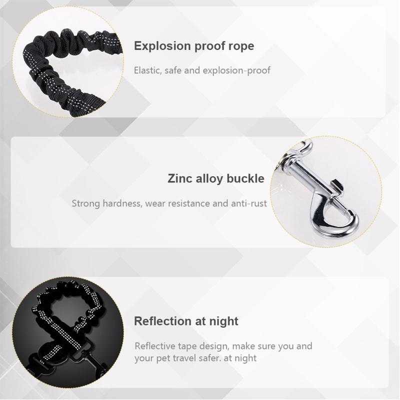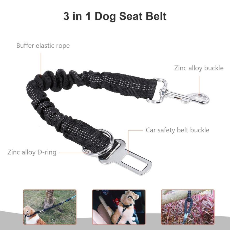 Multifunktionel 3-i-1-hundesele til bilen i zinklegering - sele med bungee-buffer og reflekterende design