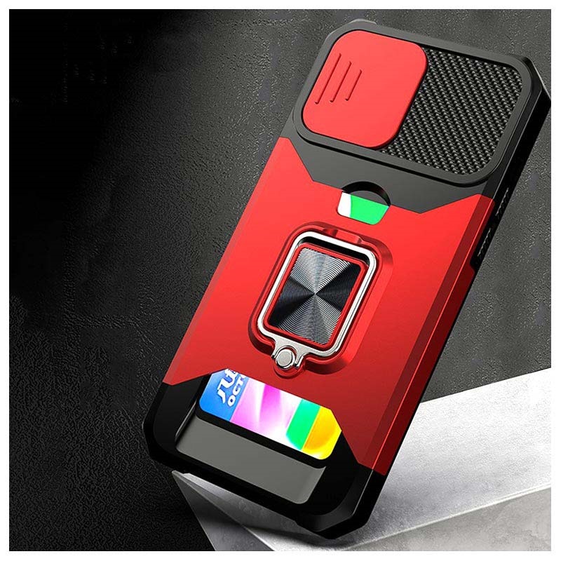 Multifunktionel 4-i-1 Hybrid Cover til iPhone 11 Pro med Kortholder, Magnetisk Ring, Stativ, Kamerabeskyttelse