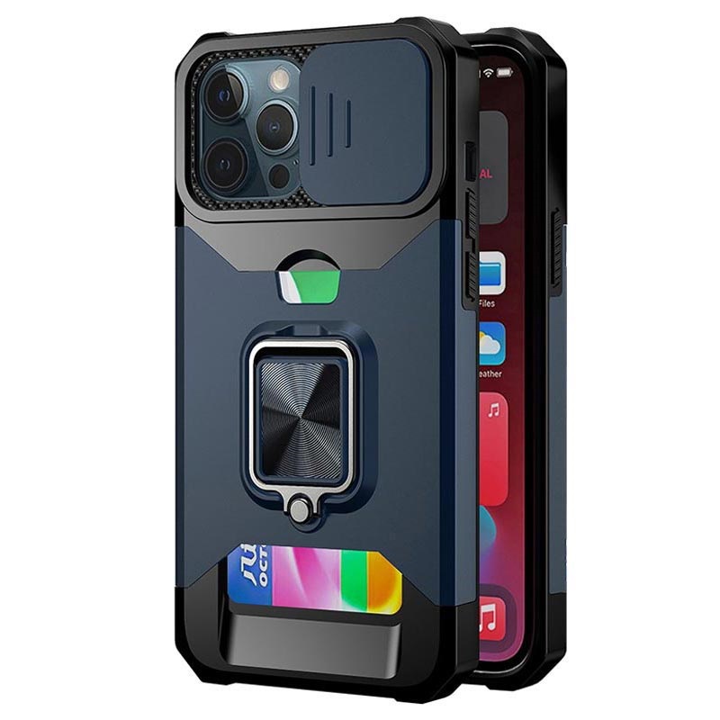 Multifunktionel 4-i-1 Hybrid Cover til iPhone 12 Pro Max med Kortholder, Magnetisk Ring, Stativ, Kamerabeskyttelse