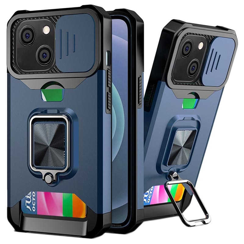 Multifunktionel 4-i-1 iPhone 13 Hybrid Cover - Navy Blå
