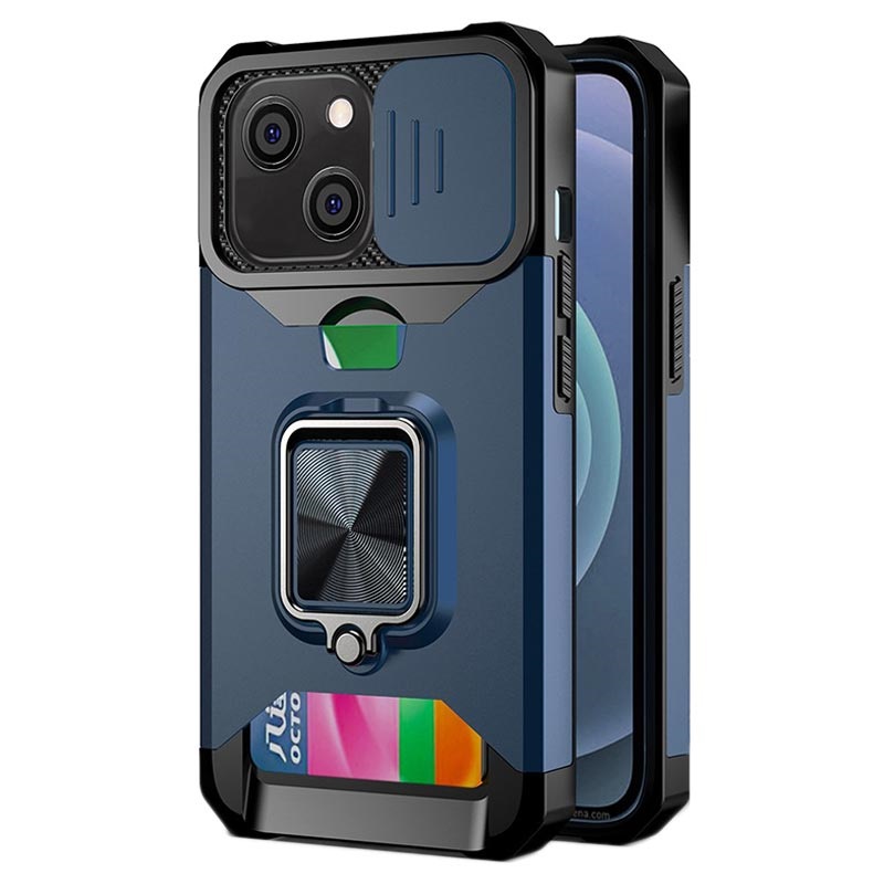 Multifunktionel 4-i-1 Hybrid Cover til iPhone 13 med Kortholder, Magnetisk Ring, Stativ, Kamerabeskyttelse