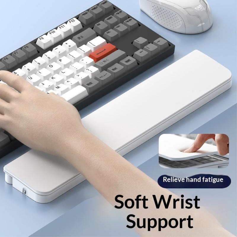 Håndledsstøtten er fremstillet af blødt polyrethan og skumpolstring af høj kvalitet for at give en blid og stabil håndledsstøtte. Det ergonomiske design hjælper med at reducere tryk og træthed under længerevarende skrivning, kontorarbejde eller studier.