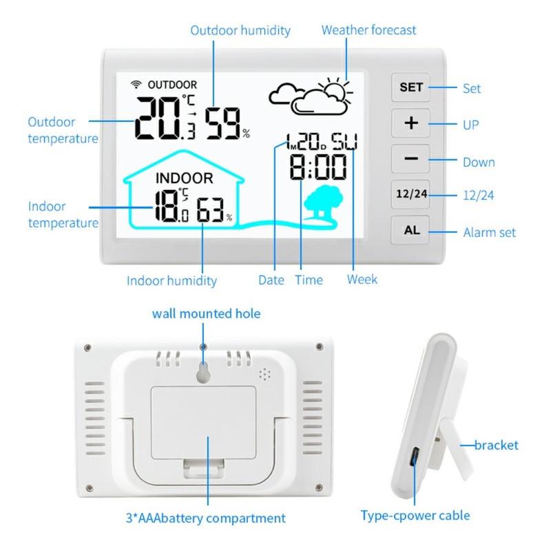 Med 5-trins vejrudsigtsfunktion, som giver klare visuelle ikoner for solrige, delvist overskyede, overskyede, regnfulde og snedækkede dage