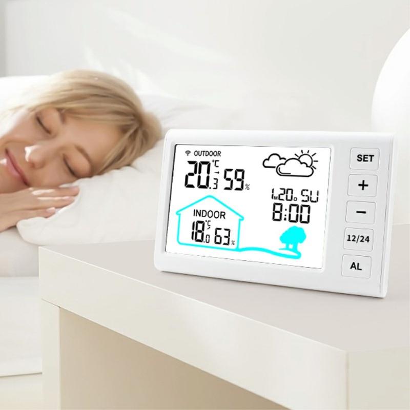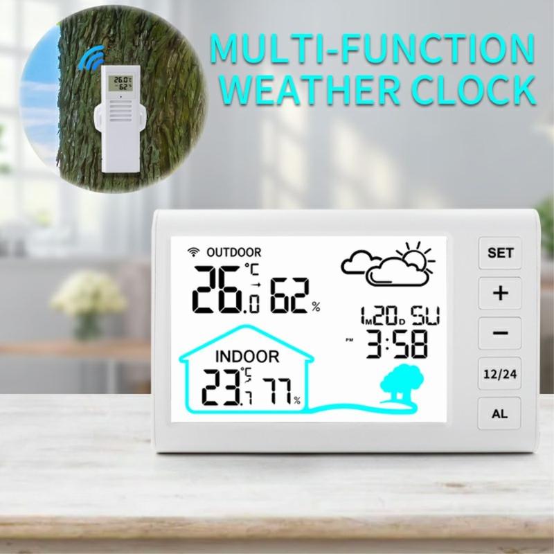 Multifunktionel trådløs vejrstation med vækkeur - indendørs og udendørs