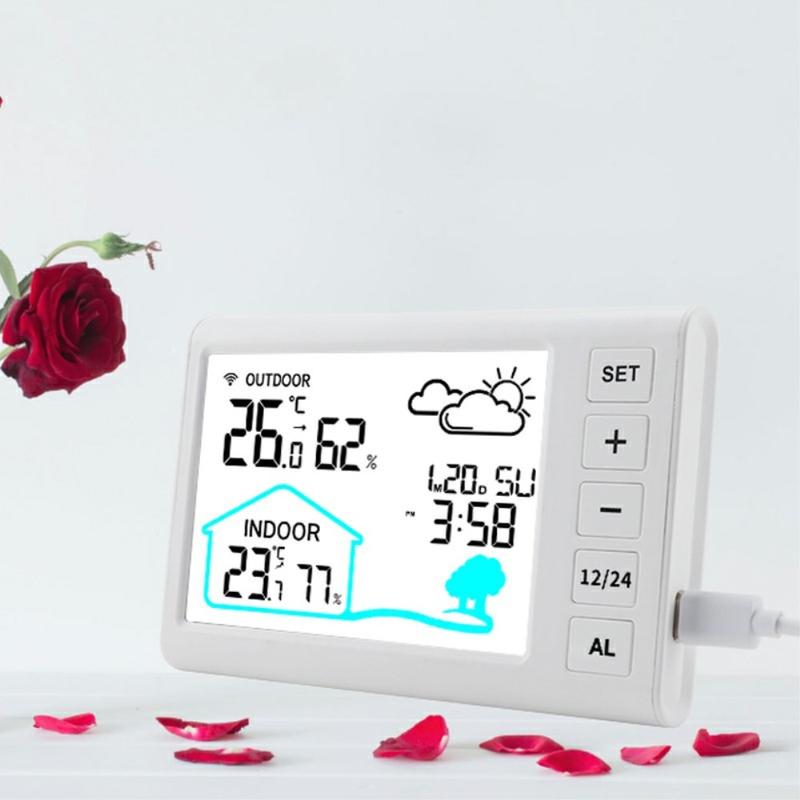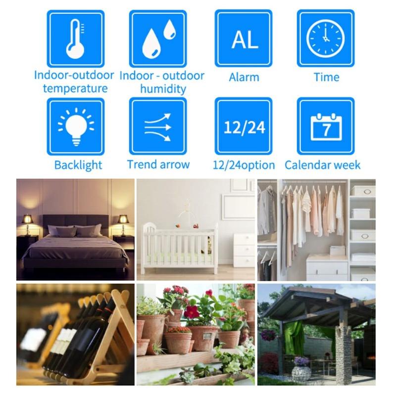 Multifunktionel trådløs vejrstation til indendørs og udendørs overvågning med vækkeur