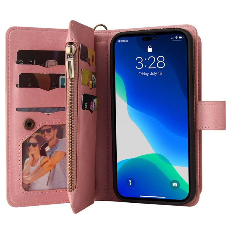 Multifunktions Serie iPhone 14 Pro Pung Cover - Pink