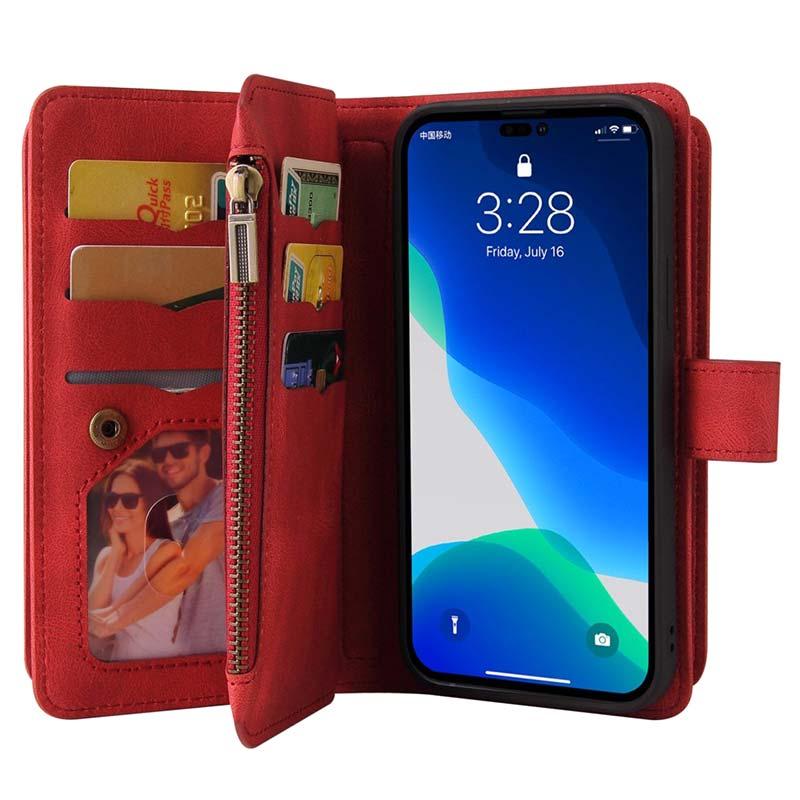 Multifunktions Serie iPhone 14 Pro Pung Cover - Rød