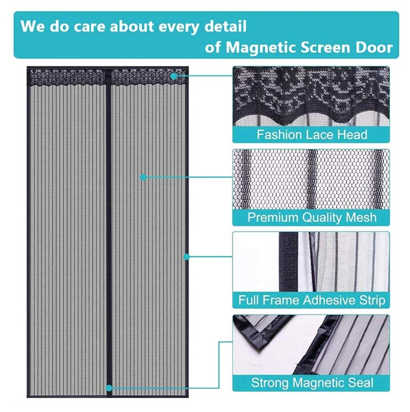 Magnetic Screen Door Curtain kombinerer funktionalitet, holdbarhed og ubesværet brug. Det lukker frisk luft ind, mens det blokerer for insekter, hvilket gør det til et must-have for et rent, behageligt og kæledyrsvenligt hjem.