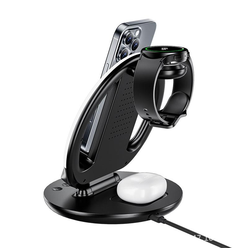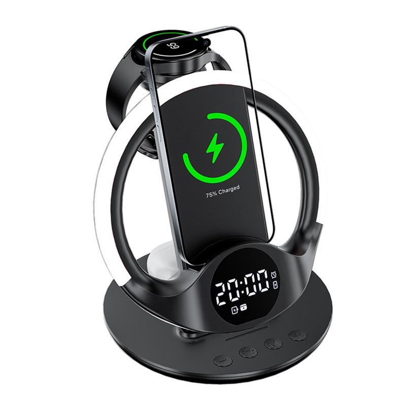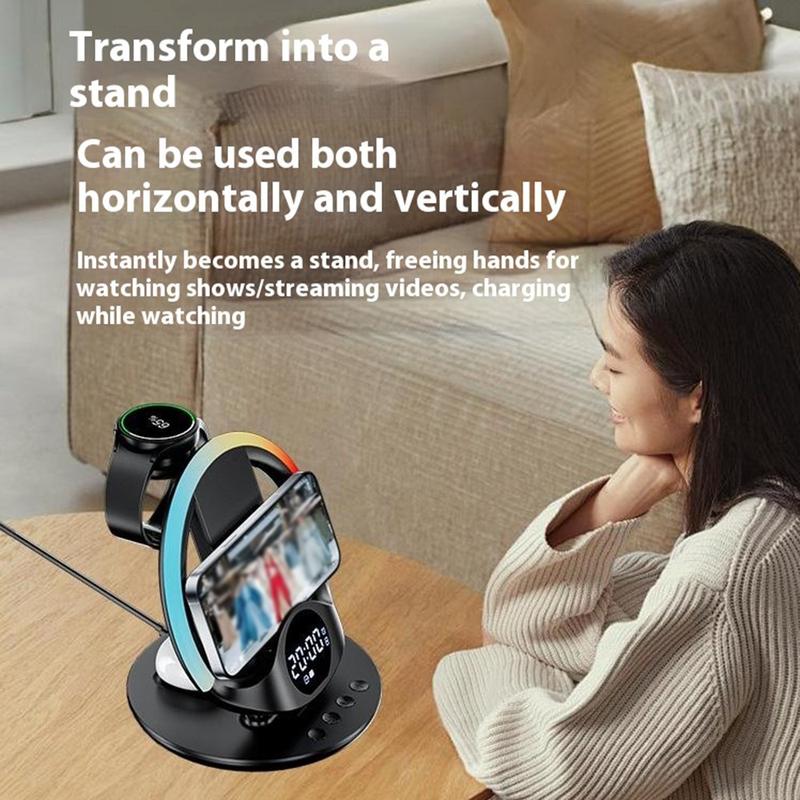 Oplad op til seks enheder samtidigt - din smartphone, dit smartwatch og dine øretelefoner - med dedikerede opladningspladser og en stærk magnetisk forbindelse, der sikrer stabilitet og effektivitet hver gang.