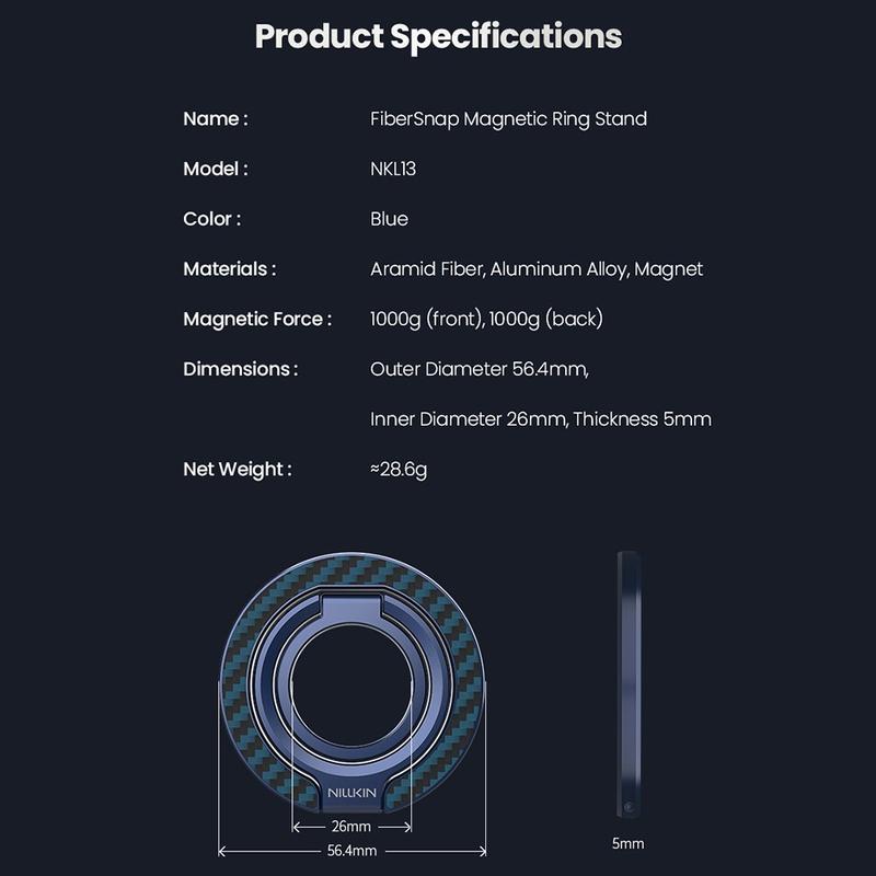 Nillkin FiberSnap magnetisk ringstativ - Aramid Fiber & Aluminium Grip med trinløs vinkeljustering