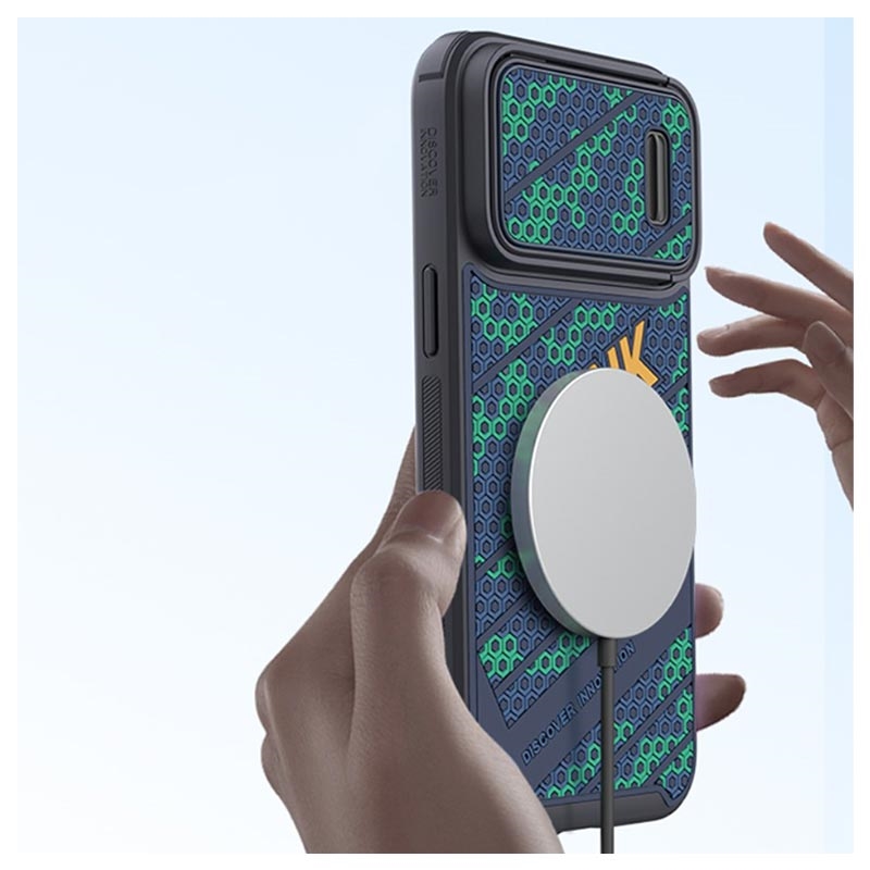 Dette to-lags cover med et unikt 3D honeycomb-design er lavet af fleksibelt, stødabsorberende TPU-materiale og hård plast, med et indbygget magnetisk ark, der er kompatibelt med Apple MagSafe-tilbehør. Desuden har coveret en kameraskyder, der fuldt ud beskytter kameraet på din iPhone 14 Pro.