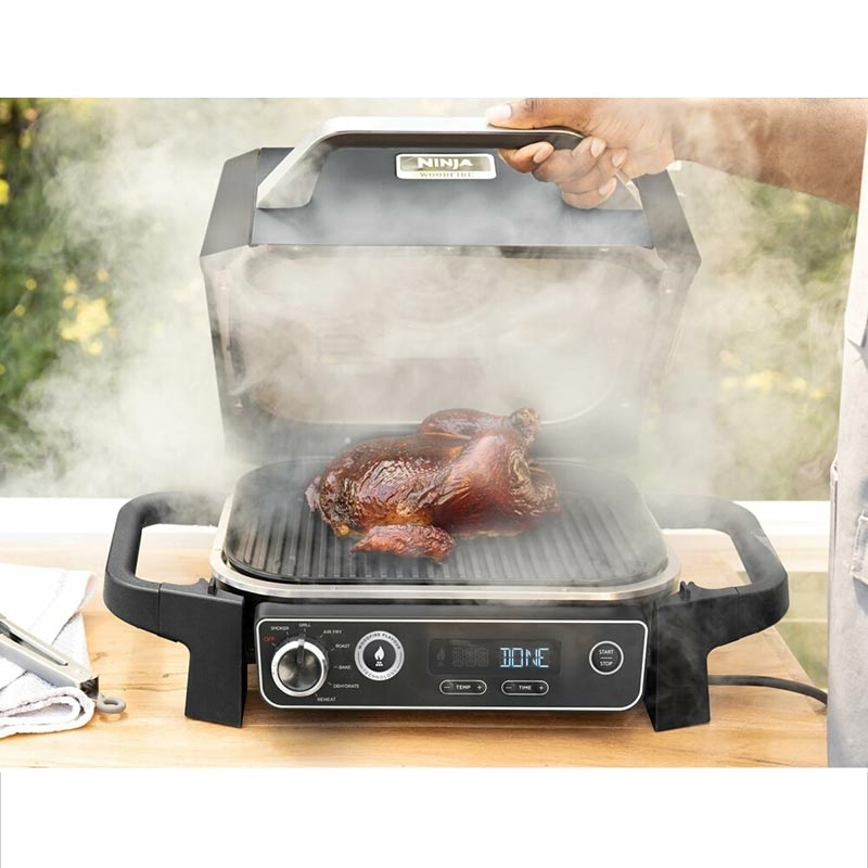 Ninja Woodfire Electric BBQ Grill & Smoker er perfekt til dem, der elsker udendørs madlavning, men har brug for en kompakt og alsidig løsning. Kombinationen af grillning, røgning og luftstegning sammen med bekvemmeligheden ved elektrisk strøm gør den til et enestående valg for enhver udendørs kok.