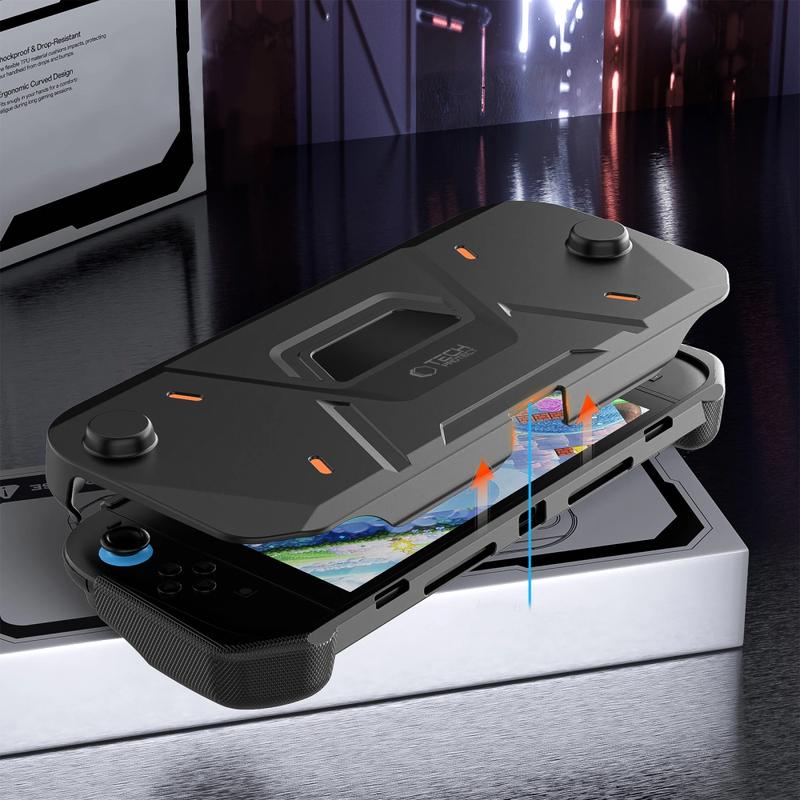 Tech-Protect Carbonox-etui til Nintendo Switch 2 - Stødsikkert cover med aftagelig skærmbeskyttelse og forhøjede hjørnestødpuder