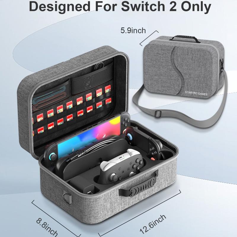 Hold din Nintendo Switch 2 sikker, organiseret og klar til at rejse med Startrc Games Storage Case. Denne opgraderede 2.0-version er specielt designet til Nintendo Switch 2-konsollen og dens tilbehør og har plads til op til 18 spilkort - 4 mere end den tidligere model. Den er bygget af ridsefaste og stødsikre materialer og giver pålidelig beskyttelse, samtidig med at den er kompakt og stilfuld. Etuiet har bestået gentagne test af stænkmodstand, så din konsol og dine spil er sikre selv i uforudsigeligt vejr. Med sit behagelige bærehåndtag gør Startrc Games Storage Case det nemt og bekvemt at transportere din Switch 2 - perfekt til spil derhjemme, på rejser eller andre steder på farten.