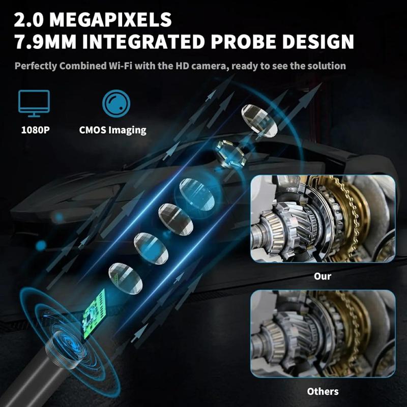 Vandtæt 8 mm endoskopkamera til iPhone, iPad, smartphones, tablet - 3 m
