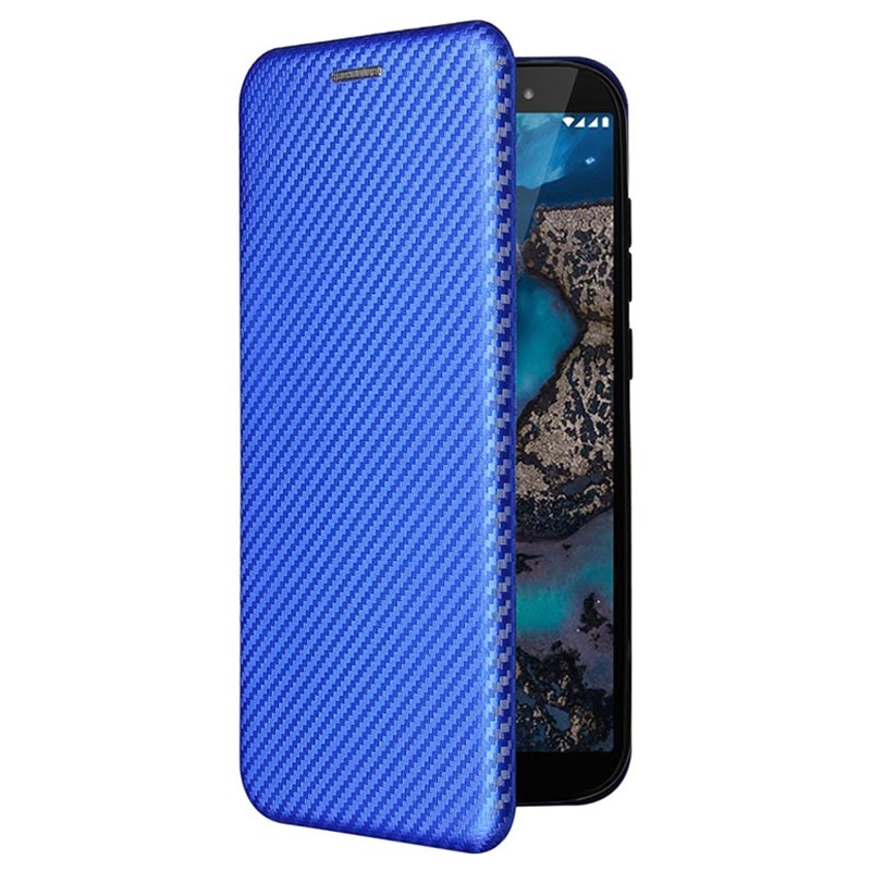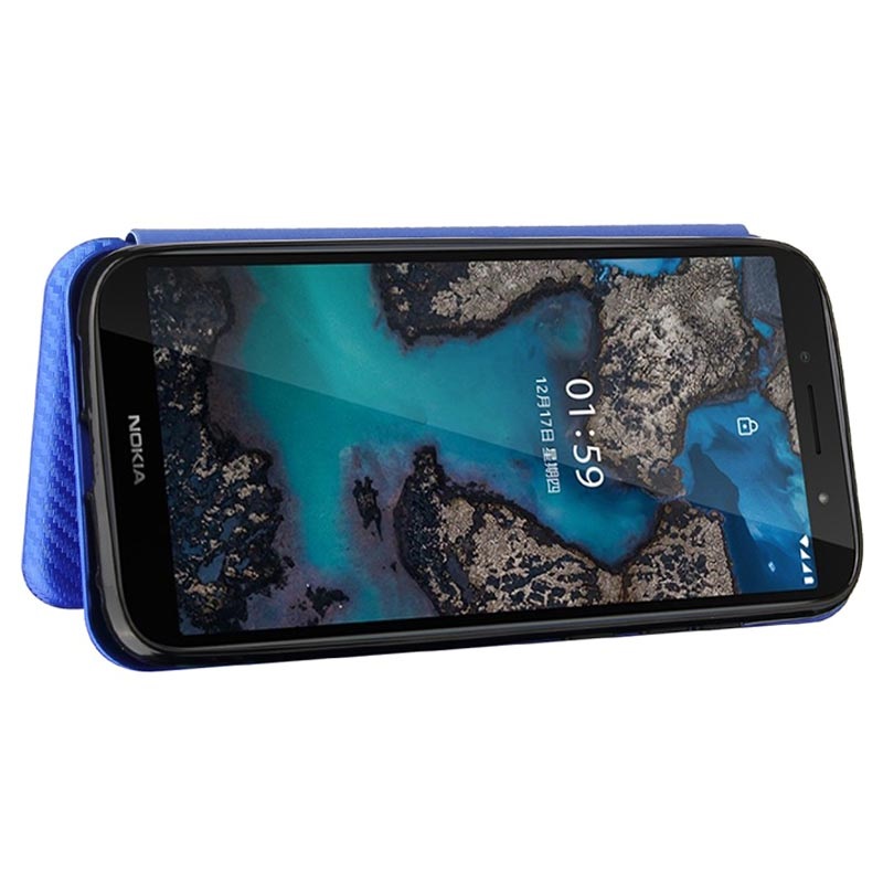 Nokia C1 Plus Flip Cover - Karbonfiber (Open Box - Fantastisk stand) - Blå