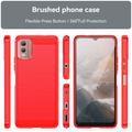 Nokia C32 Børstet TPU Cover - Karbonfiber - Rød