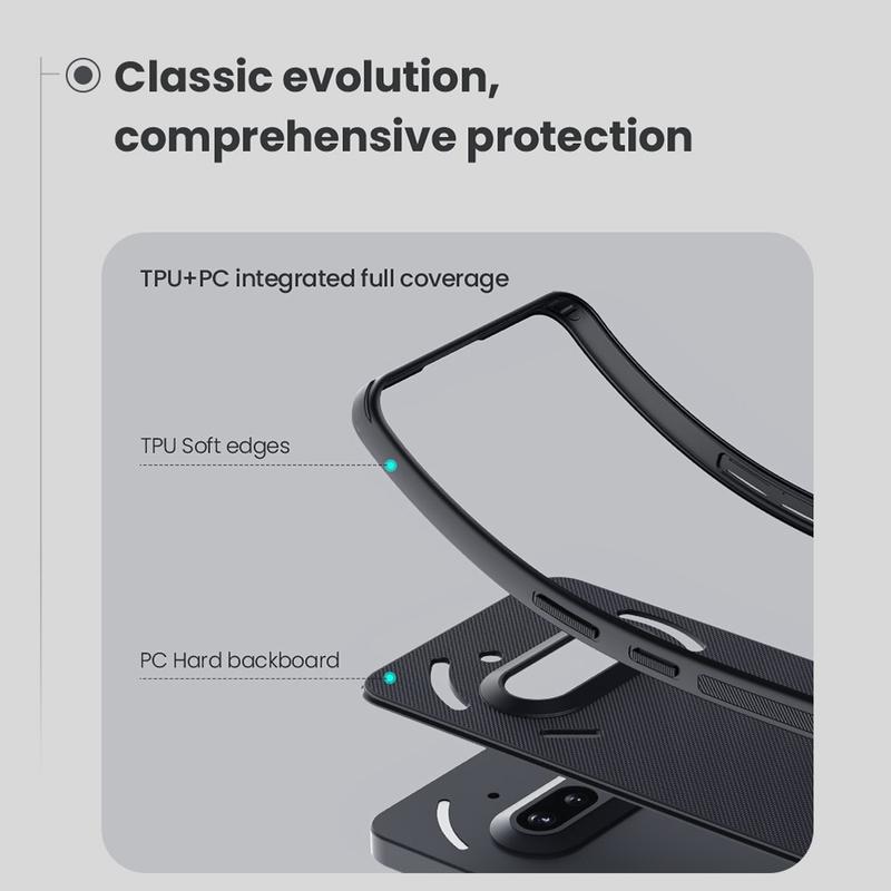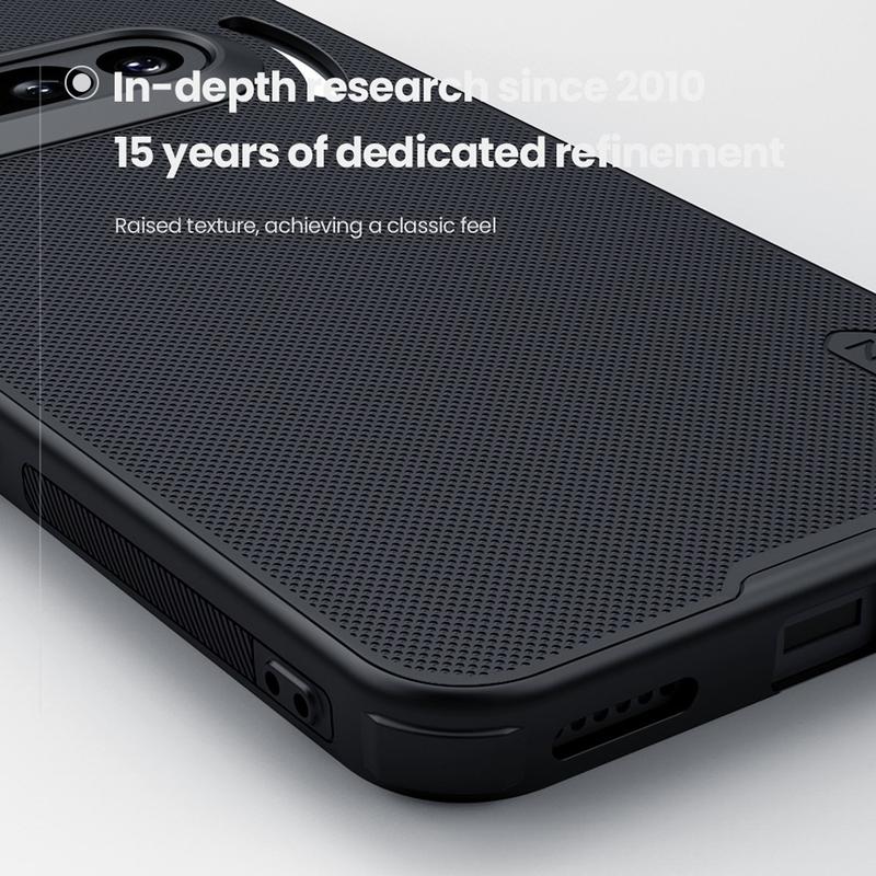 Nillkin har designet en ny og mere kraftfuld Pro-version af deres Super Frosted Shield covers til din elskede Nothing Phone (3a). Få en ultimativ beskyttelse mod skader, takket være designet med to lag - PC bagside med TPU ramme.