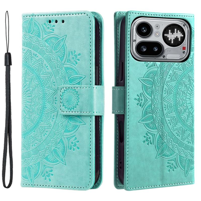 Nothing Phone (4a) Pro Mandala Etui med Pung med håndledsrem - mintgrøn
