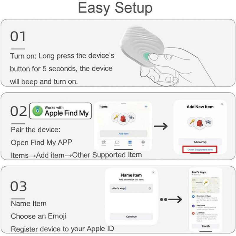 Denne smarte tag sikrer ro i sindet ved at hjælpe dig med nemt at finde dine ejendele. Dens kompakte design, vandtætte holdbarhed og lange batterilevetid gør den til et praktisk værktøj til både daglig brug og rejser.