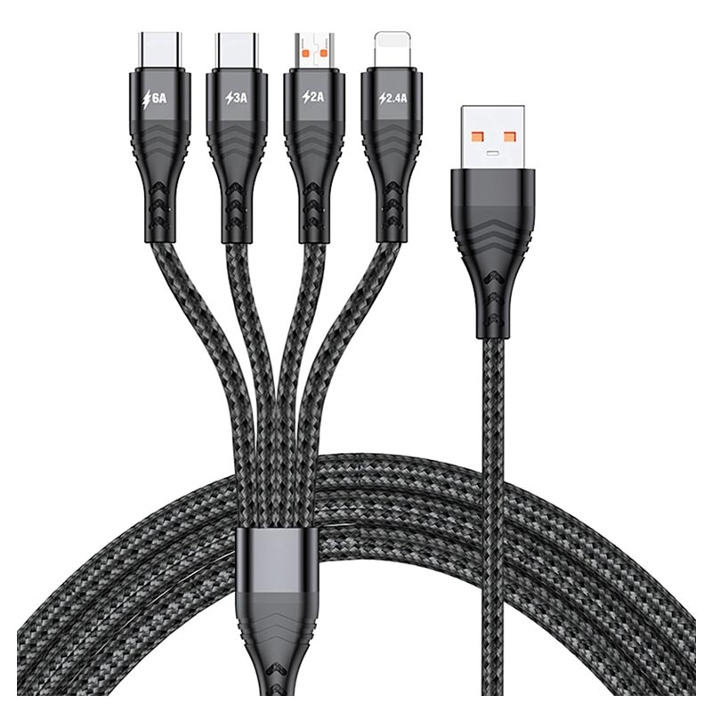 Dette 2m 4-i-1 hurtigopladningskabel er det perfekte valg for dem, der ønsker en pålidelig, hurtig og alsidig opladningsløsning. Med sin høje kvalitet, lange længde og stilfulde design, vil det opfylde alle dine opladningsbehov og mere til.