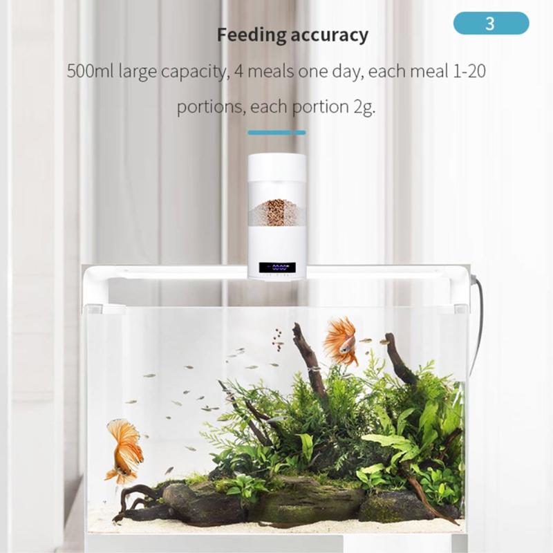 - Automatisk fodring: Programmer op til 4 fodringstider om dagen med justerbare portionsstørrelser, der passer til dit akvariums behov.